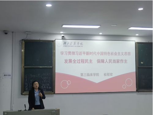 tyc5997太阳集团分党委书记桂程君以《发展全过程民主 保障人民当家作主》为主题,对全过程人民民主的提出、全过程人民民主的内涵和显著优势、深刻认识全过程人民民主的重大意义等方面展开阐述。希望全体师生党员继续深入学习习近平新时代中国特色社会主义思想,深刻理解中国式现代化的科学内涵,深刻领会加快构建新发展格局的深远意义,认真学习,增强本领,为实现中华民族伟大复兴贡献力量。