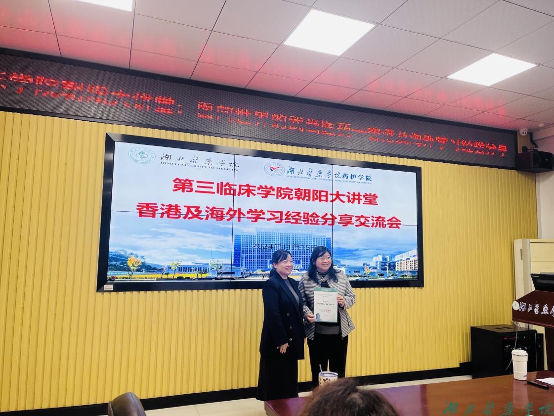 Clara Bik-San Lau教授以“面向世界的武当医药--香港及海外学习经验分享”为题做了交流,介绍她在中医药方面的学术研究,并向大家分享了在香港读硕士、博士乃至海外留学的经验。在互动交流环节,与会学生代表就中草药研究、中西医结合临床研究、赴香港学习、科研深造等问题与嘉宾进行热烈探讨。交流结束,党委副书记、李芹为两位嘉宾颁发证书。(审稿人 桂程君)