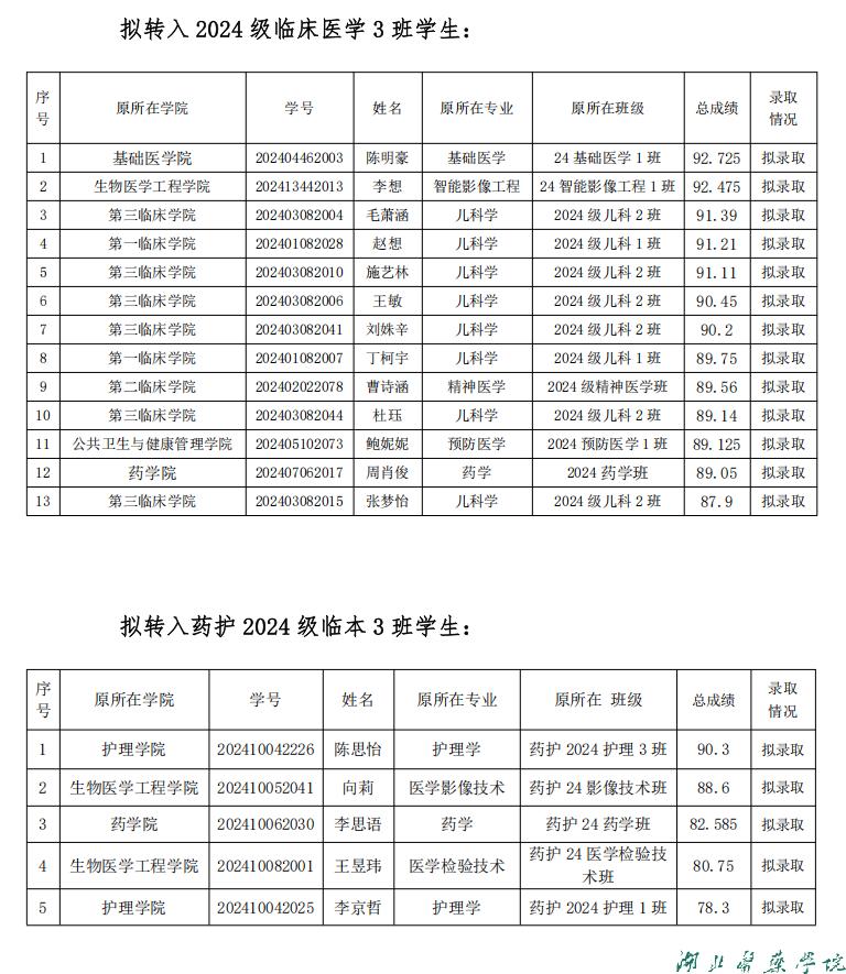 根据《关于启动2025年转专业及全科分流工作的通知》,按照tyc5997太阳集团2025年转专业工作方案,我院于3月3日对报名并符合条件的学生进行了面试考核。经tyc5997太阳集团转专业工作考核小组考核并审议,拟接收陈明豪等13名学生转入我院临床医学专业,拟接收陈思怡等5名学生转入我院药护临床医学专业。