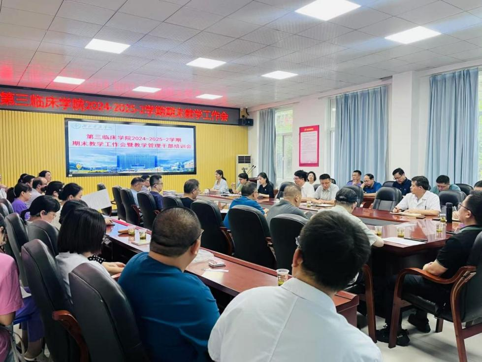 会上,学院副院长薛锐宣读《tyc5997太阳集团关于教学管理干部聘任的通知》,按照《关于进一步深化医教协同推进学校和直属附属医院融合发展的若干意见》等相关文件要求,学院教研室正、副主任与临床科室主任原则上保持一致,实行“一岗双责”,此次共重新聘任教学管理干部77人,管理队伍进一步完善。学院教学督导专家周少华教授总结并反馈本学期课堂教学督导情况,指出问题并鼓励临床教师不断完善能力,提高教学水平。教学办公室柳金金从日常教学运行、教学质量监控、课程建设、专业建设、实习实践等方面对春季学期总体教学工作做了总结汇报,并安排了近期及暑期教学重点工作。张颖传达了《关于开展科研经费专项整治》工作要求,要求各教研室全面排查学校划拨的科研经费使用有可能存在的不规范科研行为。李平飞传达学校《2025版人才培养方案修订意见》及《教育思想大讨论》工作要求。会上,各教研室就专业培养目标定位、毕业要求、课程建设、实践教学等内容开展研讨交流。学院院长王家宁对新聘任的教学管理干部提出希望,要求每位管理干部敢于担当勇于作为,希望每位教师提升教学意识,提高教学能力;坚守师德底线,弘扬优良师风。
